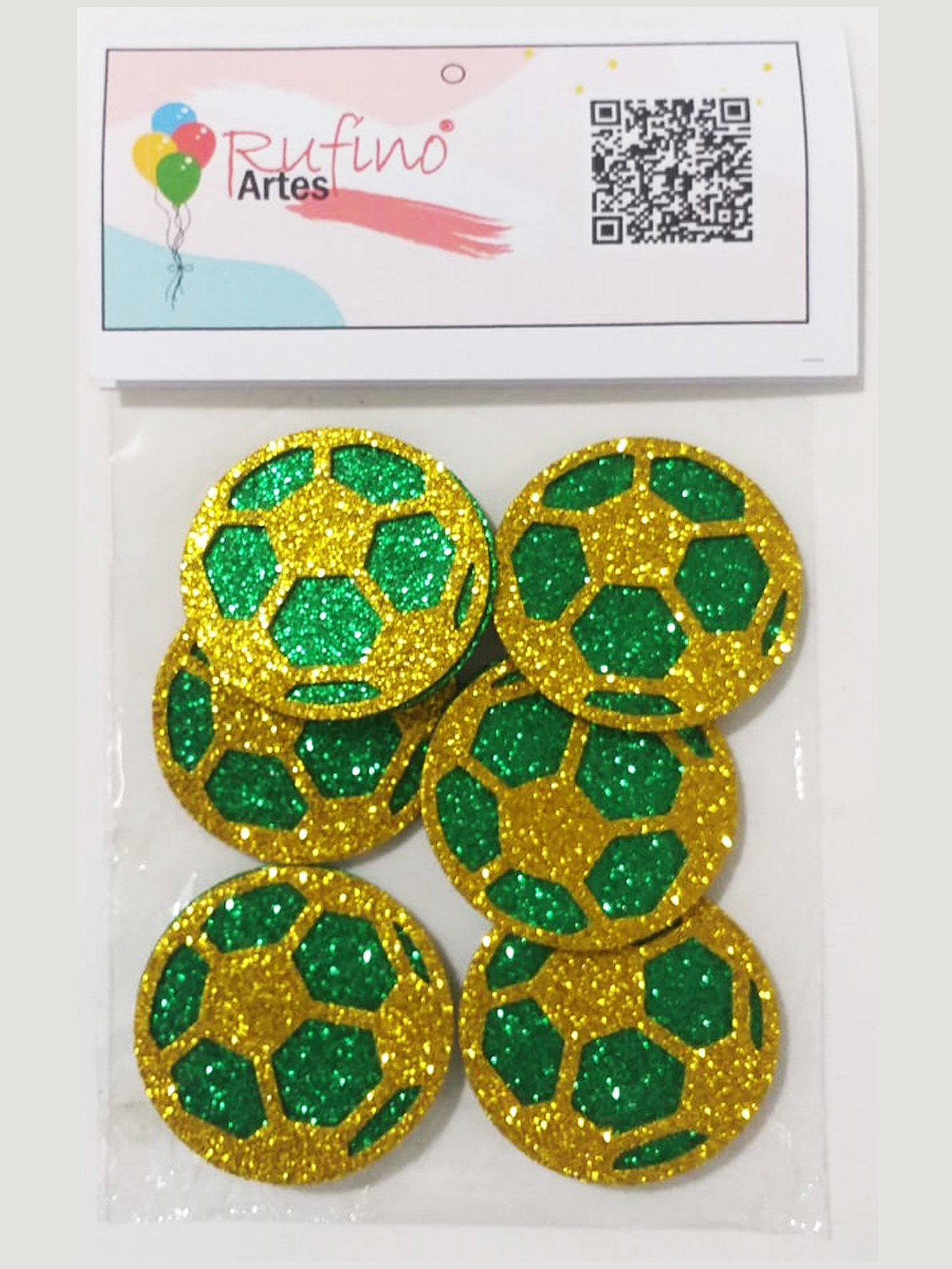 Aplique Bola Futebol em EVA – Verde/Amarelo – 4,5 cm – Pct 06 Und