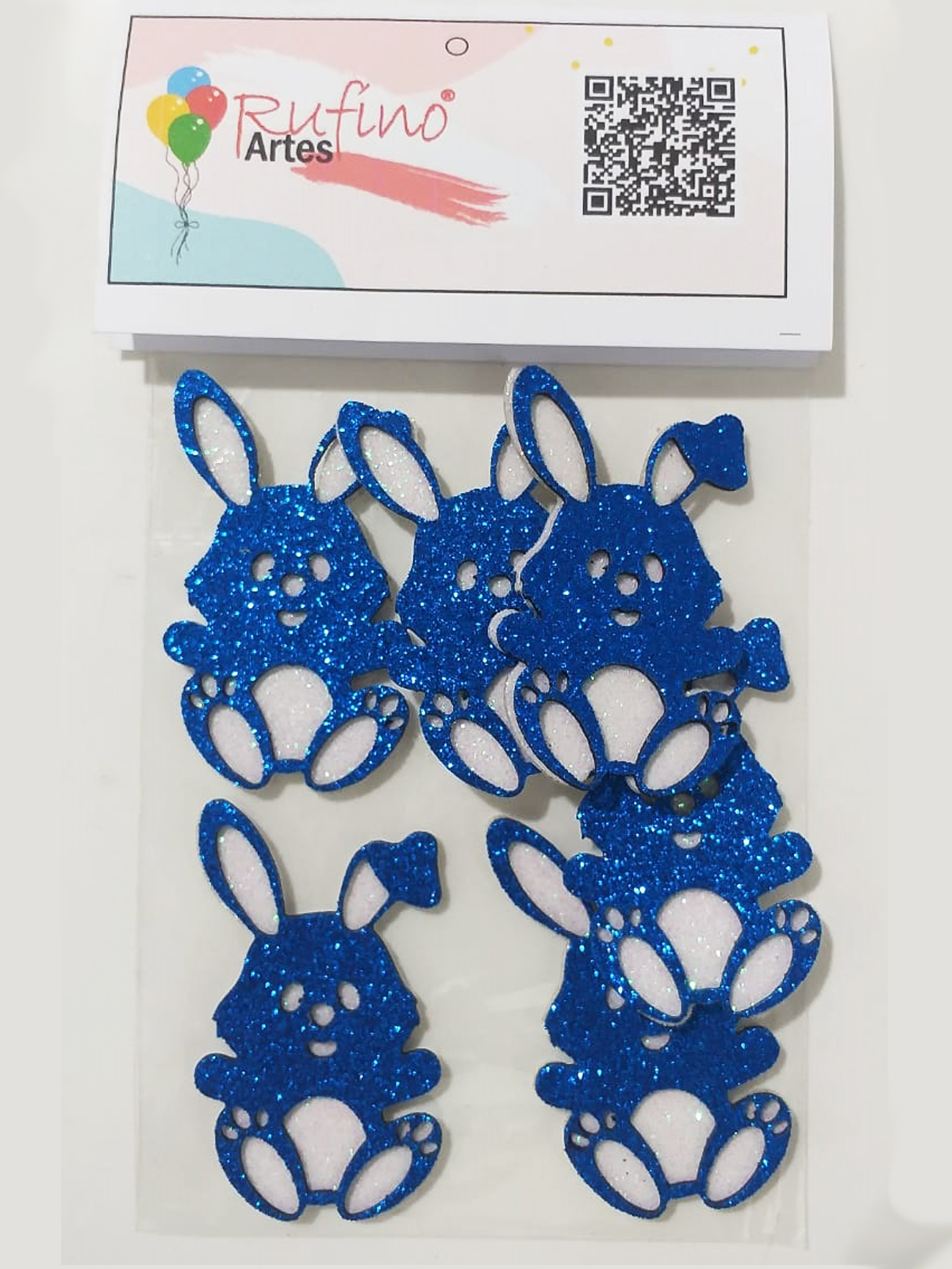 Aplique Coelho EVA 3D Azul – 6,5cm – Pct 06 Und