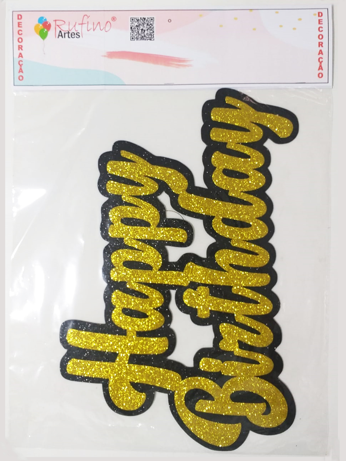 Decoração Parede EVA – Happy Birthday Ouro/Preto – 47x30cm – 1 Und